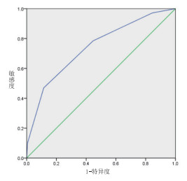 | 图 3 POSSUM评估术后出现高危并发症的ROC曲线 |