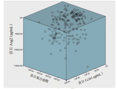 1.2 标本采集与方法记录患者入科时的氧分压、给氧体积分数并计算出相应的氧合指数,完善各患者的病史采集及临床的各项生化指标(心电监护结果、生命体征变化、首日与次日血清Ang-2与CC16水平等),并完成入科首日的APACHE Ⅱ评分。