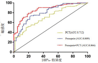 表 3 Presepsin和PCT的ROC曲线下面积比较 Table 3 Comparison of area under ROC curves between presepsin and PCT