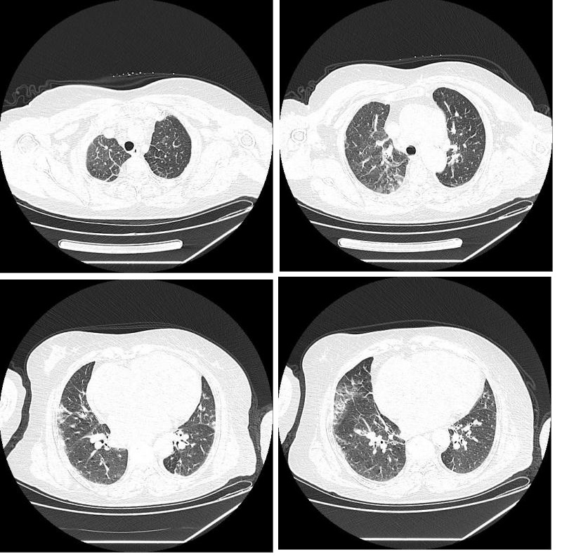 该患者早期没有出现任何提示肺炎的临床表现,如咳嗽咳痰、咯血、胸闷胸痛等症状。如果我们没有对该患者进行胸部CT扫描,就会漏诊新型冠状病毒肺炎,根据患者肺部听诊、影像学表现及双下肢水肿体征考虑心源性因素所致肺水肿可能,而新型冠状病毒可能直接、间接感染心肌以及炎症风暴导致心力衰竭、心律失常等,不排除病毒感染间接导致肺水肿的可能,核酸检测结果当天回报阳性后将患者转往定点医院进一步治疗。