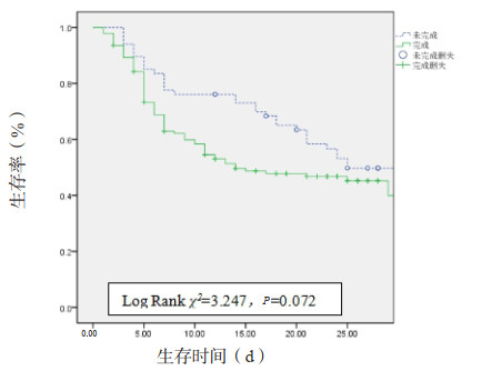 | 图 3 执行3 h Bundle患者的28 d生存曲线 Fig 3 Survival curve for patients with 3 h Bundle completion at 28 days |