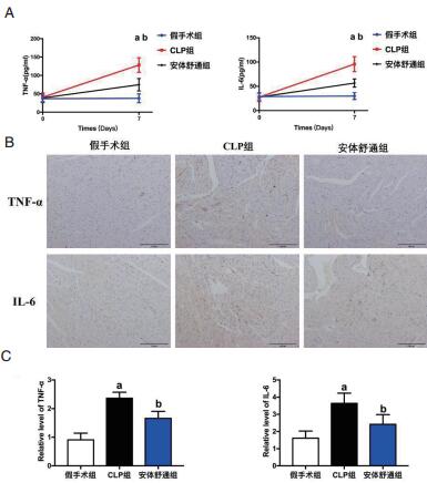 注:与假手术组相比,aP<0.05;与CLP组相比,bP<0.05