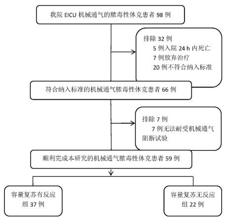 1.2 纳入与排除标准 1.2.1 纳入标准⑴纳入患者符合2016脓毒症及脓毒性休克诊断标准3.0[1];⑵收缩压 < 90 mmHg(1 mmHg=0.133 kPa),或血压下降 > 40 mmHg;⑶2 h尿量 < 0.5 mL/(kg·h);心动过速(心率 > 100次/min);⑷不能自行清除上呼吸道分泌物、胃内反流物和出血,随时有误吸危险者;⑸下呼吸道分泌物过多或出血需要反复吸引者;⑹患者自主呼吸突然停止,紧急建立人工气道行机械通气者;⑺因诊断和治疗需要,在短时间内要反复行支气管镜者,为减少患者的痛苦和操作方便,事先行气管插管。