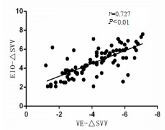 | 图 4 EIO-ΔSVV与VE-ΔSVV的相关性分析(n=57) Fig 4 Correlation analysis between EIO-ΔSVV and VE-ΔSVV (n=57) |