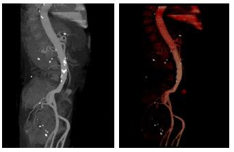 因为肠系膜上动脉瘤存在的巨大潜在风险, 其快速诊断及临床处理显得尤为重要。其诊断手段包括腹部超声, MRI扫描, CT血管造影(CTA)及DSA [3-5]。其中, 超声操作简单、方便, 可行实时观察, 但受限于检查者经验及胃肠道积气等因素影响, 漏诊率较高。MRI检查无创、无造影剂不良反应, 但因空间分辨力较低, 可能漏诊小动脉瘤。DSA常作为血管性病变诊断的金标准, 但因为其属有创检查, 费用昂贵, 射线辐射剂量大及造影剂使用较多等弊端, 一般是在动脉瘤诊断明确后行栓塞治疗时进行DSA造影检查。