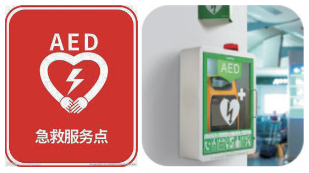 ① AED是急救设备,安放时不可锁闭,避免错失抢救时间[32]。安放时应在该场所平面示意图上标示AED位置,并在重要入口、AED放置处设有统一、明显的指示标识,应配备有保护外框、警报及警铃功能。