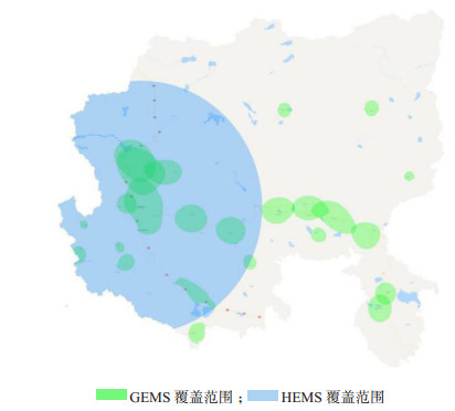 | 图 5 阿里地区GEMS及HEMS 1 h覆盖区域 Fig 5 One hour coverage area of GEMS and HEMS in Ali Region |