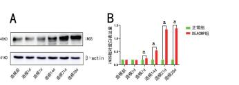 | 与正常组比较aP < 0.05, n=6 图 4 DEACMP大鼠海马iNOS蛋白表达 Fig 4 Expression of iNOS protein in hippocampus of DEACMP rats |