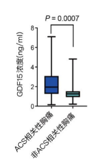 2.3 GDF15在ACS相关性胸痛组与非ACS相关性胸痛组的浓度比较