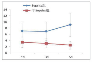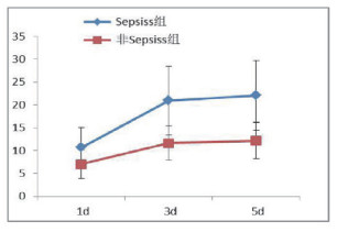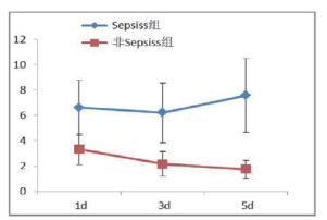 | 图 2 Sepsis组和非Sepsis组suPAR动态比较 |