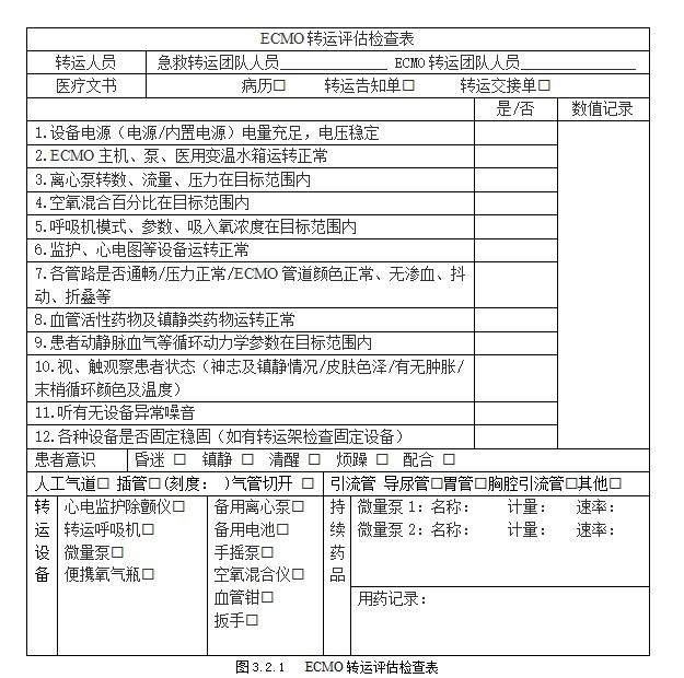 图 3 ECMO转运评估检查表