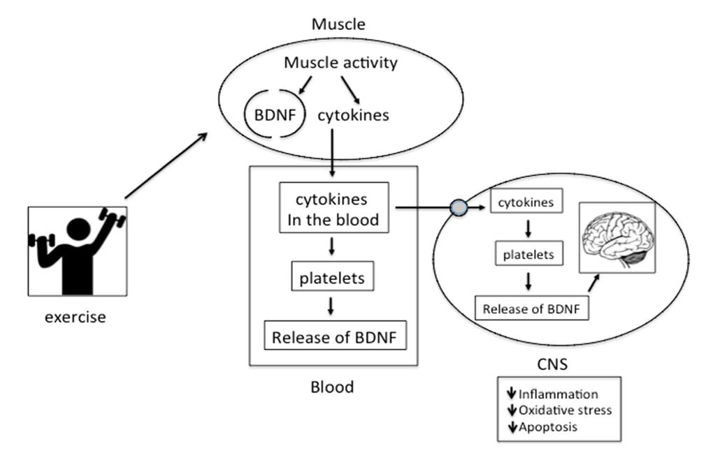 图 2 锻炼影响脑组织潜在的细胞和分子机制