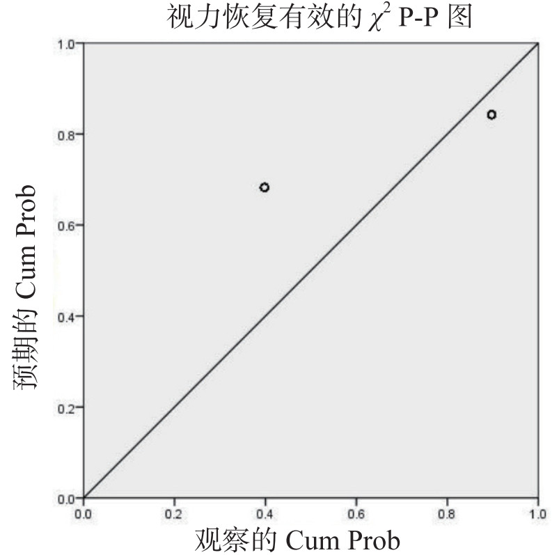 图 1 两组患者的视力恢复有效率差异对比P-P图 Fig 1 Comparison of the difference in the effective rate of vision restoration between the two groups