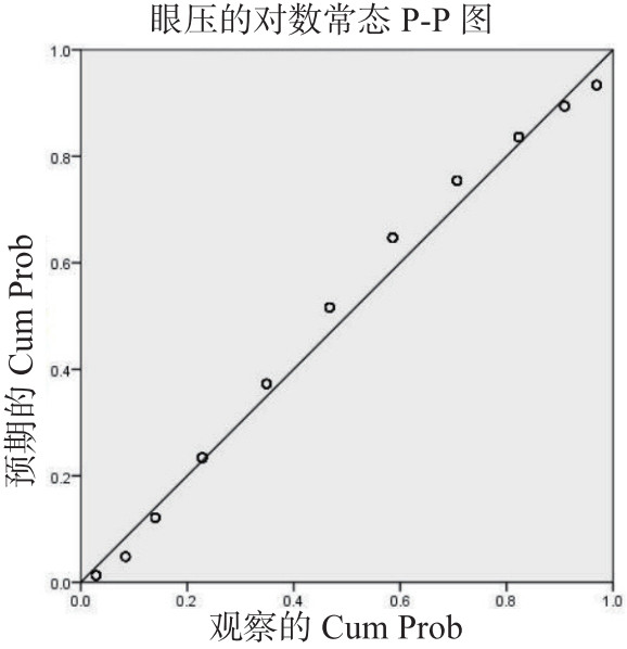 图 2 两组患者治疗前后视野及眼压变化差异对比P-P图 Fig 2 Comparison of the difference in visual field and intraocular pressure changes between the two groups before and after treatment