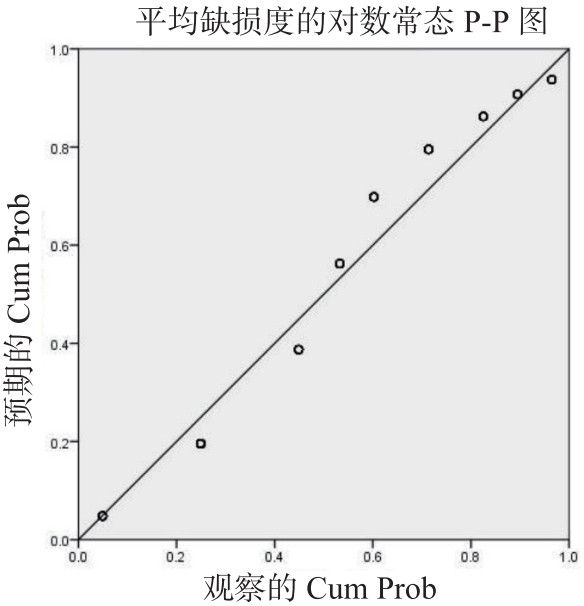 图 3 两组患者治疗前后平均缺损度变化差异对比P-P Fig 3 Comparison of the difference of the average defect degree between the two groups of patients before and after treatment
