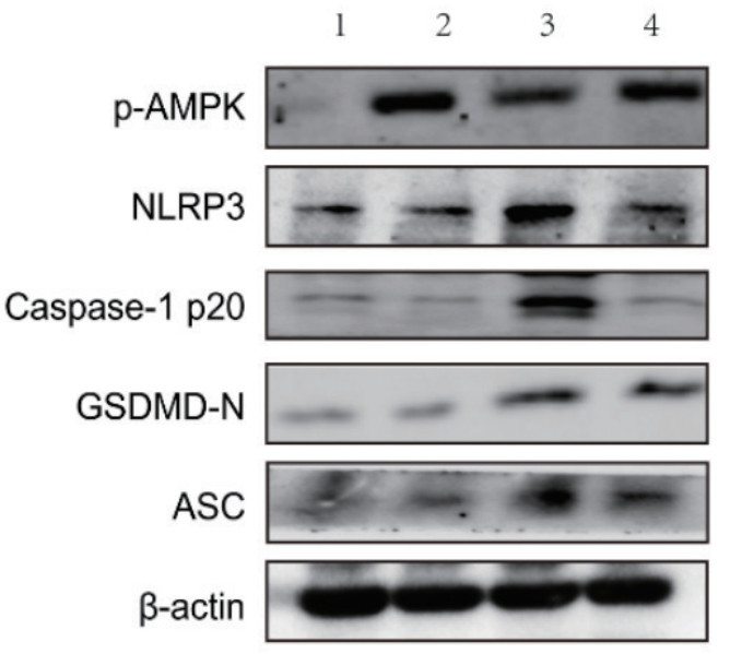 | 组别(n=6/组) | p-AMPK | NLRP3 | Caspase-1 p20 | GSDMD-N | ASC |