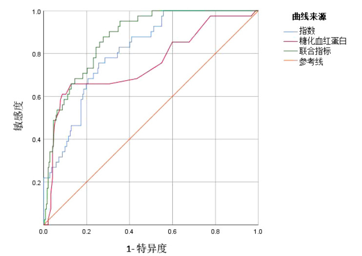| 图 3 TYG、HBA1c及指标联合的ROC曲线 |