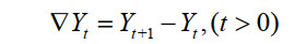 差分化处理是指对零均值的非平稳时间序列进行差分,使之成为平稳时间序列。一阶差分序列的运算公式为