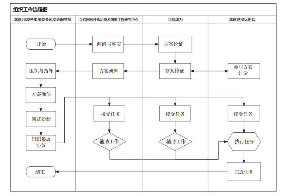 | 图 1 本届冬奥会期间五棵松体育中心医疗保障组织工作流程 |