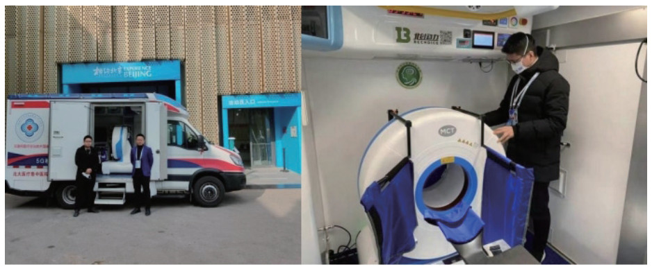 3.2 多元化场馆医疗保障工作此次医疗保障任务中,“设备拥有单位”自愿无偿提供“使用期间”相关车载小型CT设备的使用权及冬奥技术服务保障团队;“设备使用单位”协调配合冬奥组委、市卫生健康委等相关单位负责保障工作;“特邀设备保障单位”提供移动医疗所涉及的移动CT、车载技术等技术支持及检验检测服务,对提供的相关设备进行检验检测,确保设备运行安全稳定。同时,“设备拥有单位”将在该赛区现场,向“设备使用单位”的技师人员提供设备所必需的安全信息和操作规程现场培训。特别值得一提的是,在疫情闭环管理情况下,几方共同应用5G移动通信,实现了闭环内外远程培训与指导[9]。在大型国际赛事应急医疗保障环节,开创了深入贯彻“绿色可持续”的办奥理念和“节俭办奥”的原则的崭新的多元化合作范式。此次五棵松冰球场馆医疗保障工作的圆满完成,彰显了举国体制、集中力量办大事的制度优势,由组委会统筹与管理,实现了既为冬奥医疗保障提供最优质的服务,又为“办奥”节约了人力、物力、时间,得到了社会各界的肯定和赞誉。
