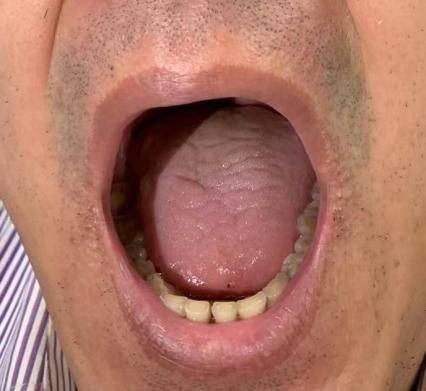 | 舌部无明显肿胀 图 2 患者入院时舌部图片 |