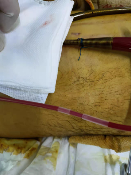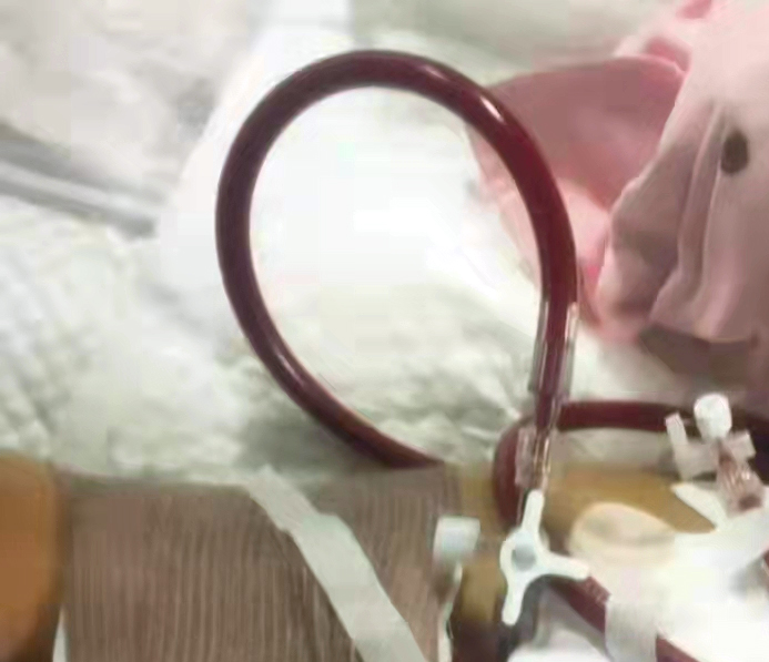 | 图 1 改良前远端灌注延长管弯曲盘旋实图 |