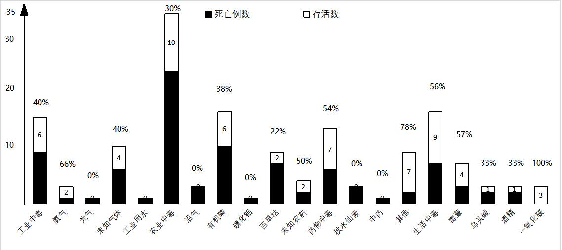 | 图 1 各种类型中毒的存活率 Fig 1 In-hospital survival for all types of poisoning |