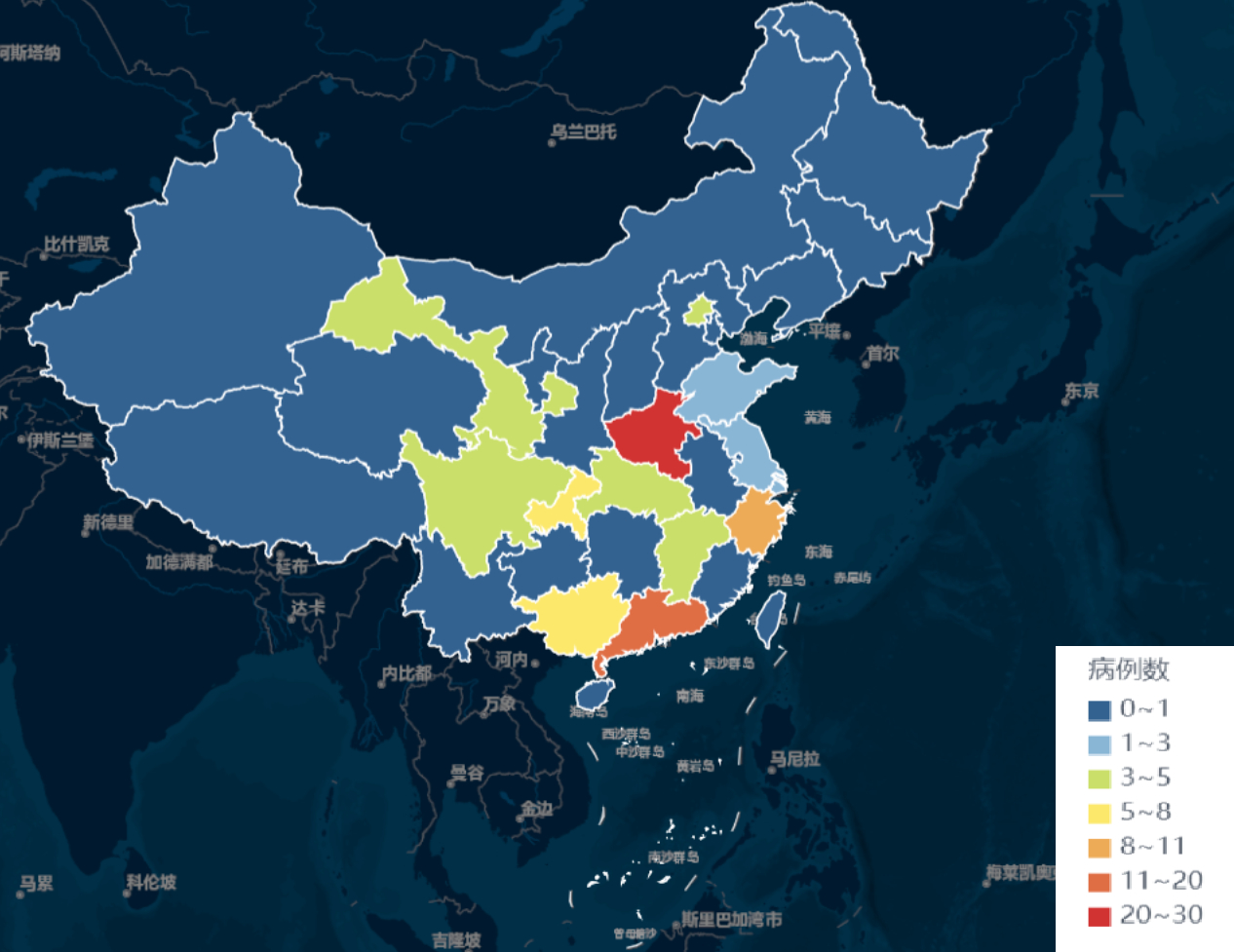 | 图 2 患者全国分布情况 Fig 2 National distribution of patients |