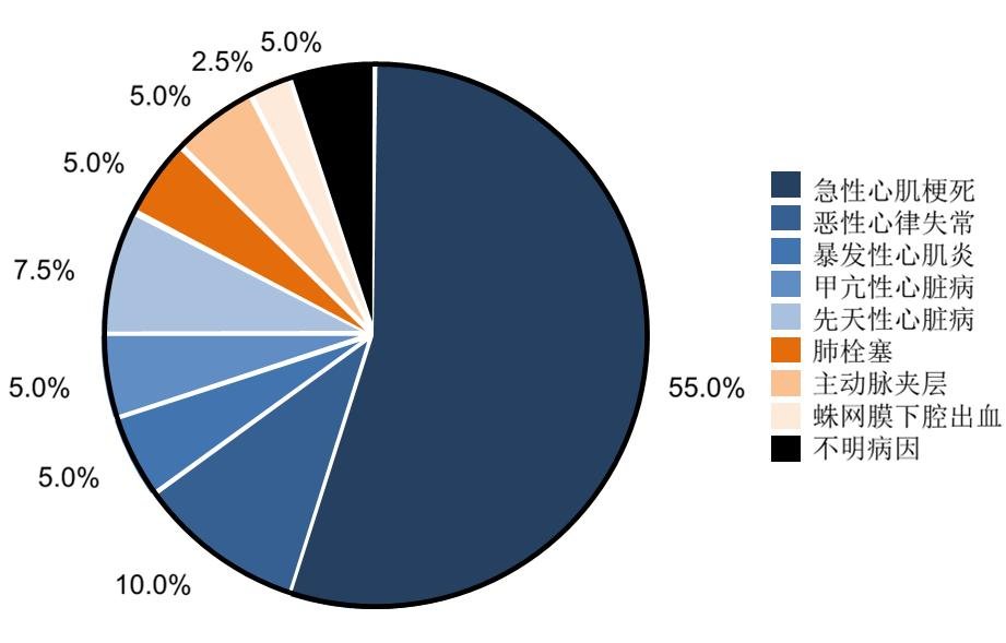 | 图 1 OHCA-ECPR患者的原发病分布图(n=40) Fig 1 Distribution map of primary diseases in patients with OHCA-ECPR (n=40) |