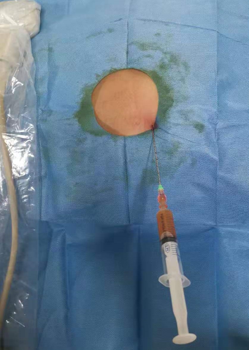 首先要取得患者的配合,操作过程中不能乱动。操作者在穿刺之前应精确掌握盆底的解剖结构,并设计好穿刺路径。路径应该尽量选择坐骨大孔下部,靠近尾骨,经骶棘韧带刺入,避免坐骨神经和臀肌血管的损伤。如果经梨状肌穿过,容易发生疼痛和出血[8, 11-12]。因彩色多普勒超声可提示血管管径及走行,可以最大限度的减少出血的发生。