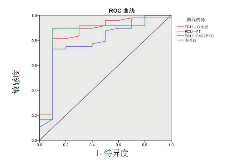 EICU-血小板(×109/L) 0.851(0.697~1.000) 0.001 61.00 0.900 0.896 0.796