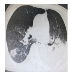 入院第16日(9月22日)患者抽搐较前好转,双上肢抽搐为主,偶有四肢短暂抽搐,心率血压波动仍大,出现肺部坠积性炎症(图 3),白细胞、超敏C反应蛋白及降钙素原均增高,细菌学培养肺炎克雷伯杆菌,根据药敏调整抗生素:特治星4.5 g每6 h一次、万古霉素1 g每12 h一次。同时联系麻醉科使用脑电双频指数(bispectral index, BIS)监测,指导镇静药物使用。