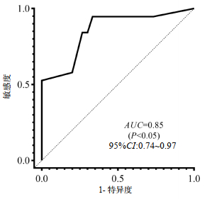 | 图 6 尿比色结果预测预后的ROC曲线 Fig 6 ROC curve of urine colorimetric results for prognosis |