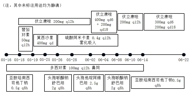 | 图中未标注用法均为静滴 图 2 抗生素调整过程 |