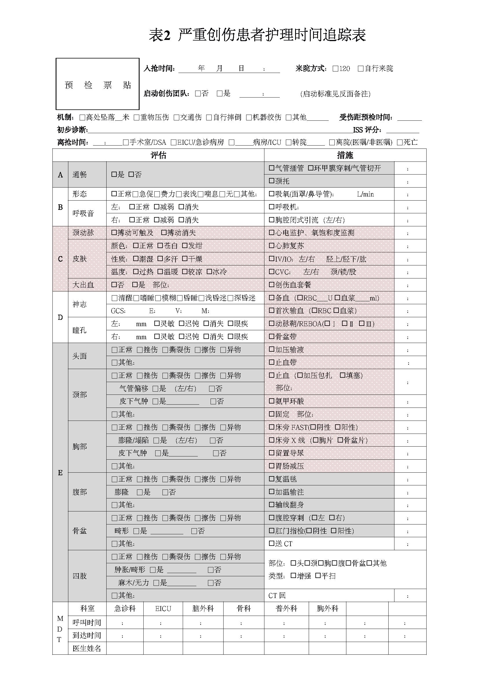 护理时间追踪表结合创伤复苏时间轴流程在严重创伤患者救治中的应用