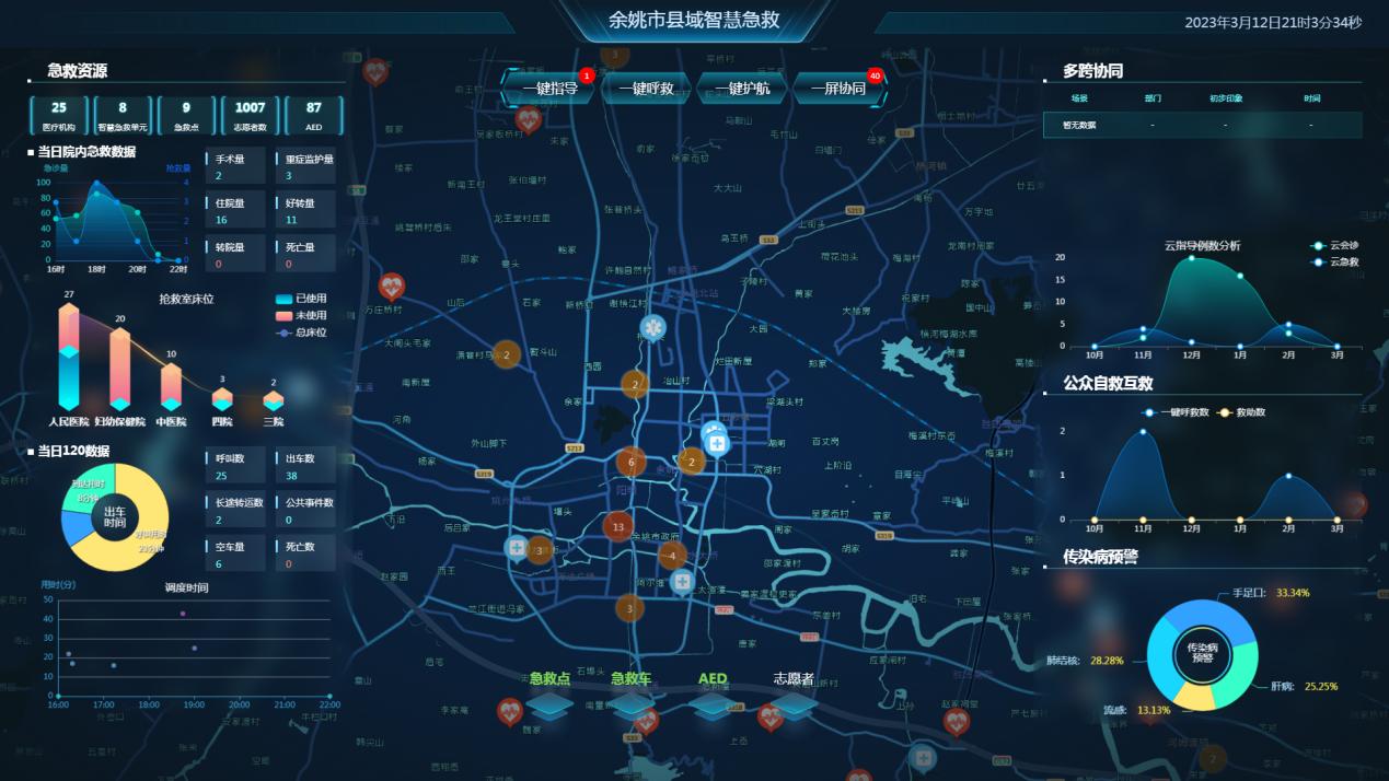 | 图 1 余姚市县域医共体智慧急救系统驾驶舱 |