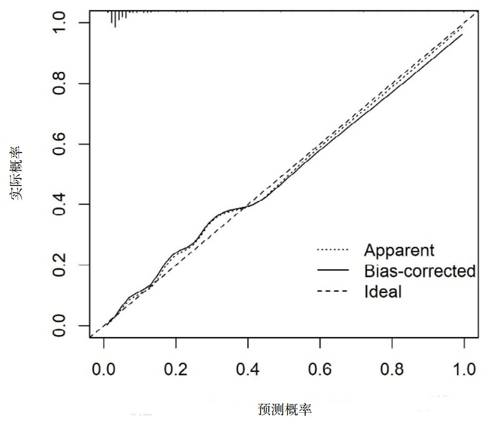 | 图 4 预测SAP的Nomogram模型的校准曲线 Fig 4 Calibration curve of the Nomogram model for predicting SAP |