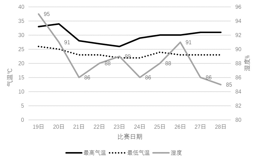 | 图 1 杭州亚运会宁波赛区赛程气候情况 Fig 1 Climate of Hangzhou Asian Games in Ningbo region |