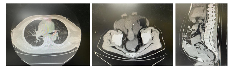 图 1 患者入院时胸腹部CT表现