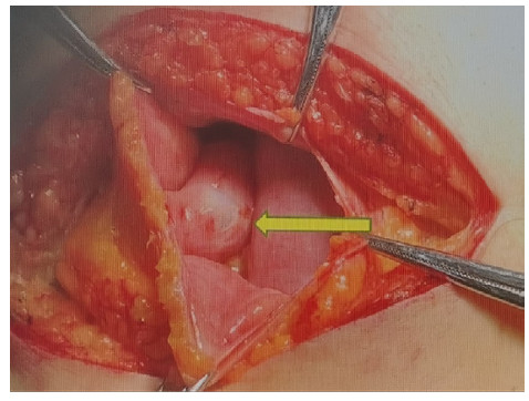 欧洲泌尿外科协会指南建议,腹膜内膀胱破裂应始终通过标准的手术修复来处理,因为由于腹部败血症和腹膜炎的风险,它可能导致危及生命的疾病。相比之下,对于腹膜外膀胱破裂可以考虑保守治疗[6]。对于腹膜内损伤,首选手术探查和修复。手术治疗包括从腹膜腔排出尿液,关闭破裂处,并可放置腹腔及盆腔引流管。早期诊断和及时的手术治疗可降低与此病相关的发病率和病死率。然而,如果穿孔很小,患者没有严重感染、出血,可以考虑采用抗生素、腹腔引流和导尿管等保守方法。如果破裂是腹膜外的,处理通常是保守的抗生素和尿导管保持膀胱低压自由引流。尿液引流可代用留置导尿管或穿刺导尿管。对于明确腹膜内破裂且无严重腹腔感染和其他脏器损伤的患者,可考虑进行腹腔镜手术[7]。本例SRUB破裂至腹膜腔,并进行了手术干预。术后患者体温恢复正常,血肌酐迅速降低。