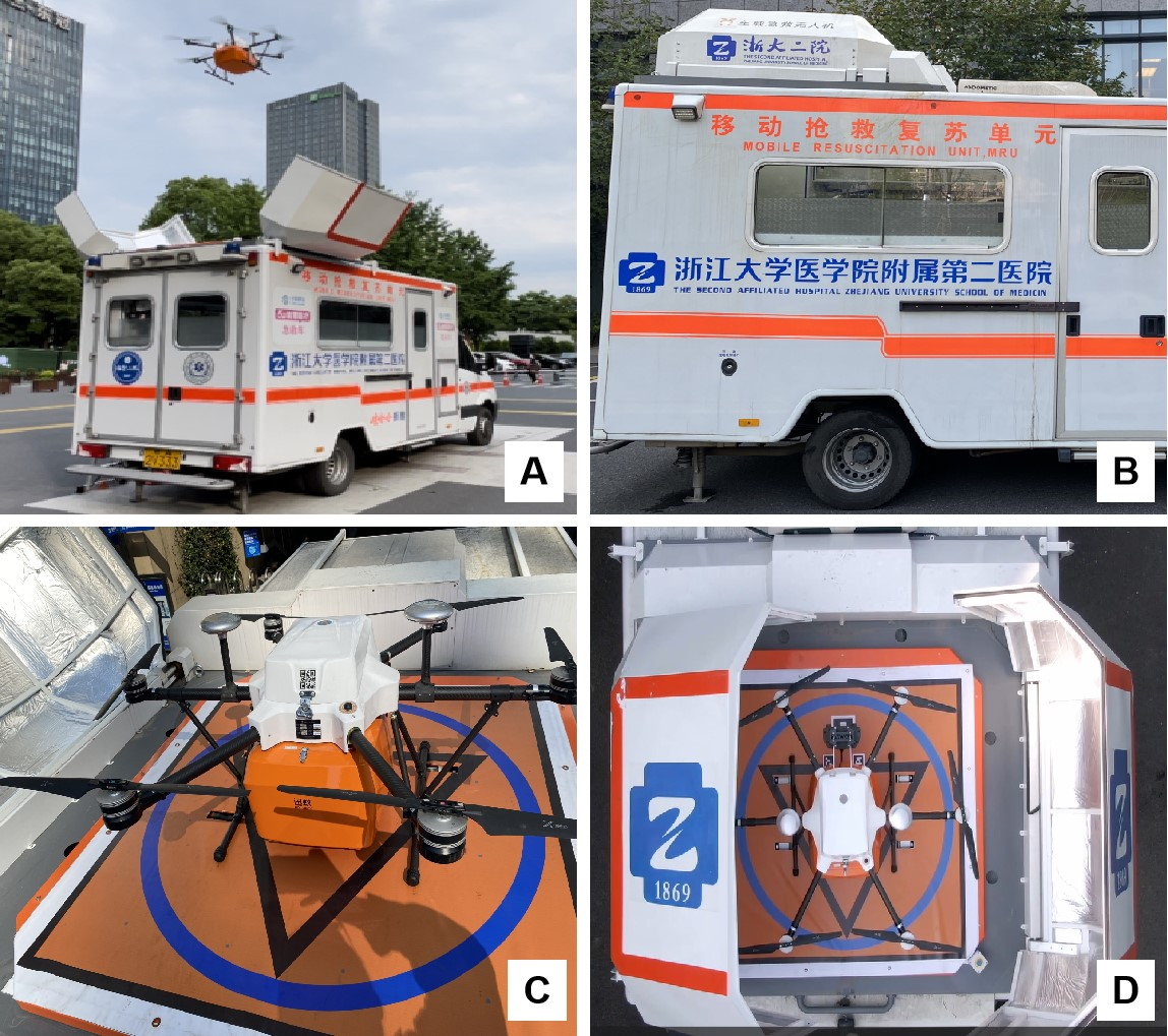 急诊医疗服务体系包括院前急救、院内急诊诊治和重症监护治疗三个环节[1]。随着现代科技和医学的发展,作为院前急救要素之一的救护车,从传统意义上的“运输工具”转变成“移动急诊室”,未来正朝着智能、多功能的方向发展。救护车在院前急救中也存在短板,例如道路交通拥堵会影响车辆通行速度、救护车的设备和物资有限等等[2-3]。笔者所在团队基于既往已搭建的无人机(unmanned aerial vehicle,UAV)城市急救用血运输、县域医共体无人机急救物流体系建设的基础上[4-5],探索了救护车车载无人机建设的可行性和效果,现报道如下。