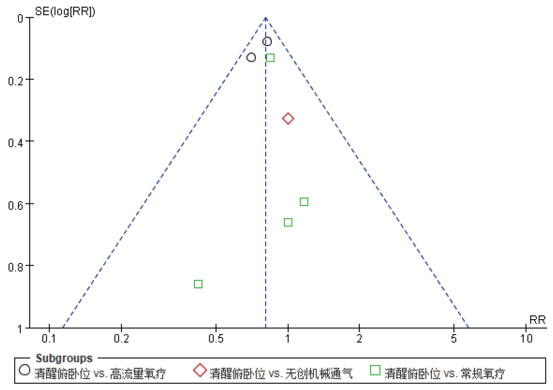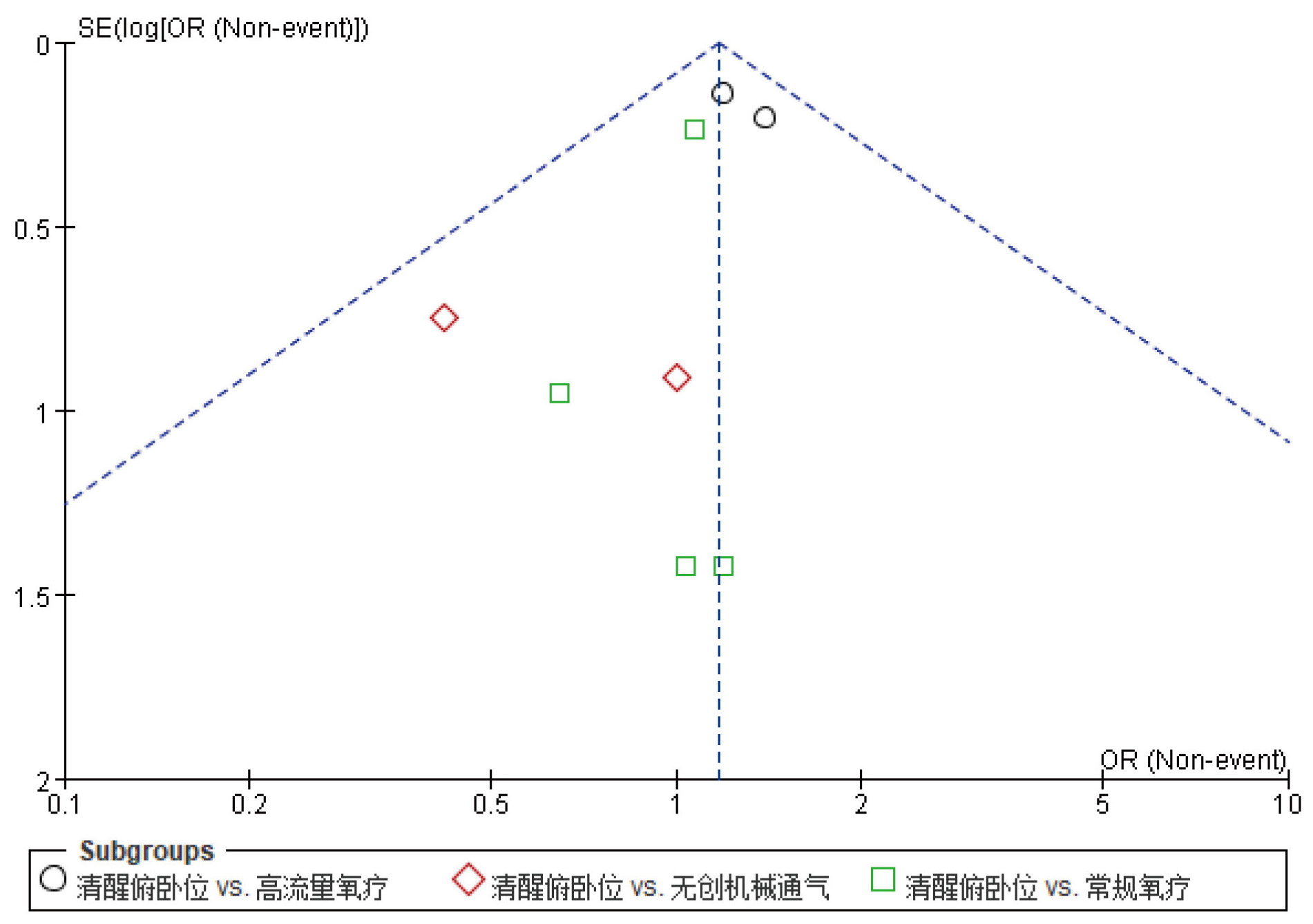 图 4 清醒俯卧位对COVID-19患者气管插管率影响的漏斗图