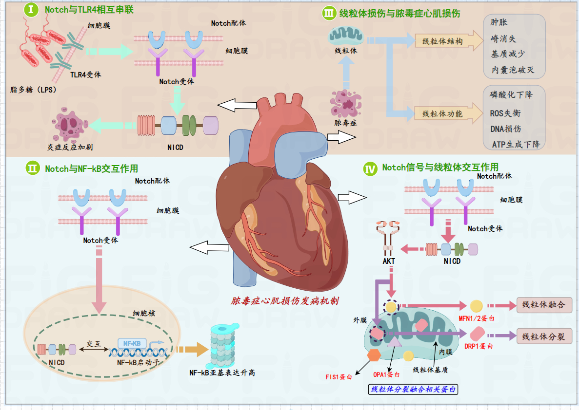 | 图 1 Notch信号与线粒体在脓毒症心肌损伤中的交互作用机制 |